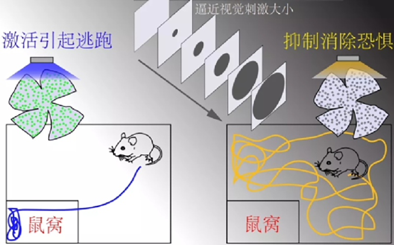 小鼠脑中负责逼近黑影刺激的视觉通路