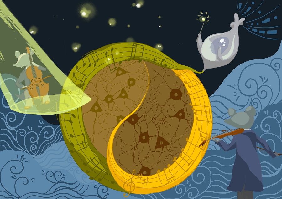 在此基础上,研究人员利用双光子在体钙成像技术,在小鼠执行以上行为任务时,对听皮层神经元进行单细胞分辨率的群体记录。记录结果表明,听皮层神经元不仅表征了声音刺激本身,有部分神经元还直接编码了对于类别分界线的推测这一隐含认知变量。这个发现揭示了大脑中的神经元如何对主观的认知过程进行实时的编码。
