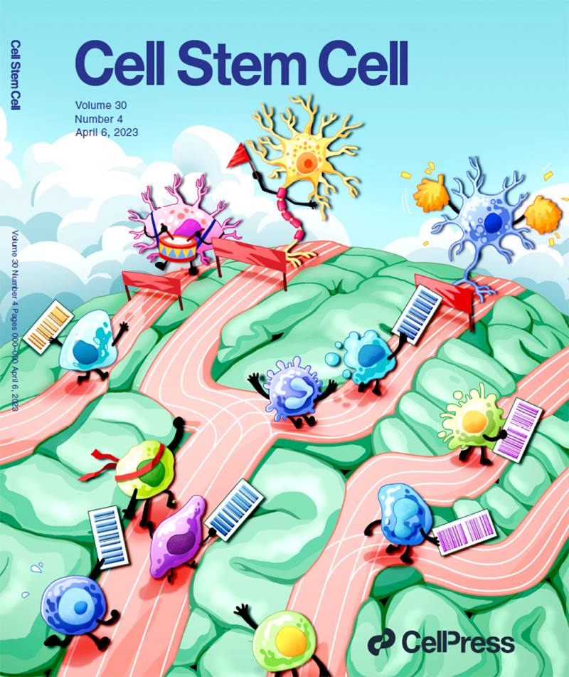 2023年3月18日,《Cell Stem Cell》期刊以封面文章的形式在线发表了中国科学院脑科学与智能技术卓越创新中心(神经科学研究所)、神经科学国家重点实验室陈跃军研究组题为《人神经分化过程中跨时间段的克隆谱系追踪》的研究论文,该研究通过建立能够跨分化阶段高通量谱系示踪新技术-SISBAR,解析了人多能干细胞分化为人腹侧中后脑神经细胞的单细胞谱系,发现了许多新的谱系分化路径和分子调控机制,研究进一步展示了基于SISBAR技术的新发现在改进帕金森症细胞治疗策略中的应用。SISBAR技术有望为干细胞研究带来新的突破。